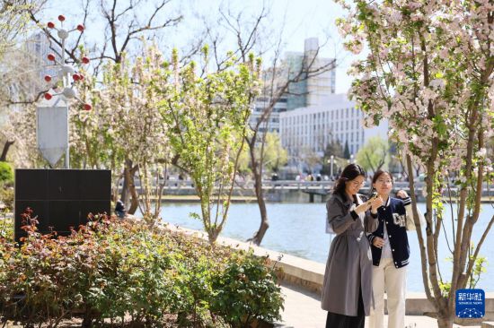 4月6日,游人在天津大学卫津路校区赏花。